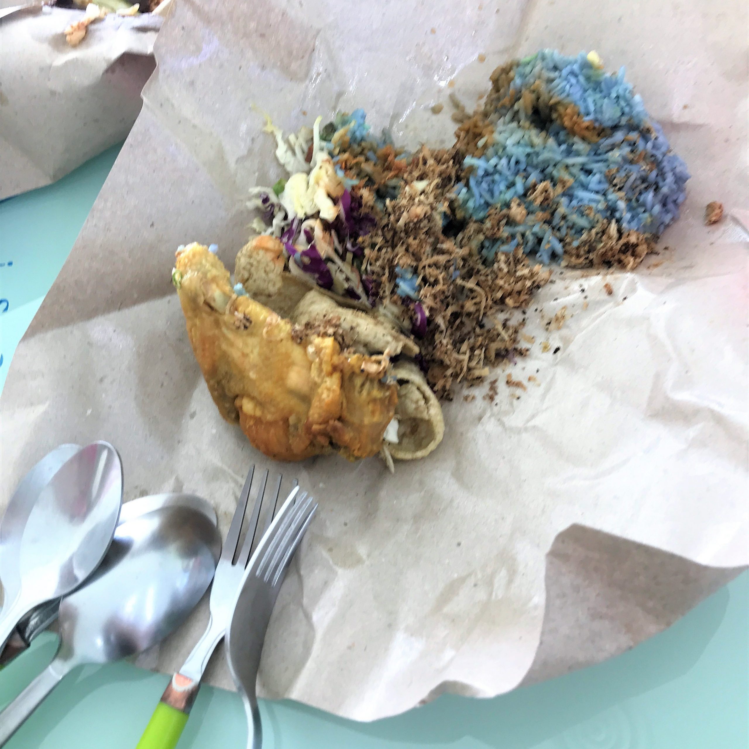 隔天一早,朋友特地帶了「藍飯 Nasi Kerabu」讓我嚐嚐,
